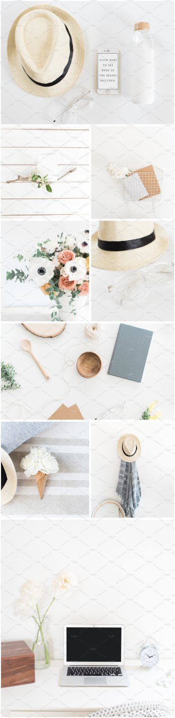 这组漂亮的照片是为你准备的。这27张图片和模型都是在白色背景上创建的,你就可以轻松地在Instagram上设置你的订阅数周,制作出令人惊叹的图片,用更少的时间来美化你的博客。