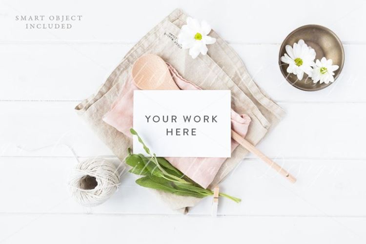 食谱卡片展示样机模板 Styled recipe card mock up – PSD Jpg