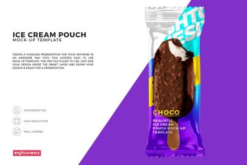高品质的雪糕冰淇淋VI样机展示模型ice-cream-pouch-mock-up