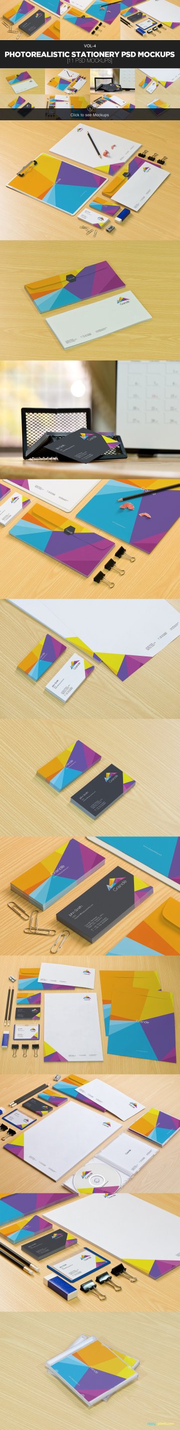 一套非常全面的企业品牌物料样机,几乎涵盖了大部分办公司能看到的一些小的宣传物料物件,比如信纸、信封、工牌、便签、光盘、纸袋……需要做企业品牌设计的小伙伴们,这套素材必须是囊中之物,拿到手只管将设计好的品牌 Logo 网上贴就好(智能对象)。