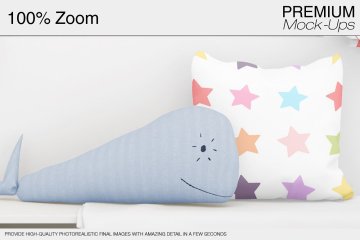 图穷联素材库 » 时尚简约的窗帘和枕头纺织品样机模板Curtains Pillows Set