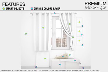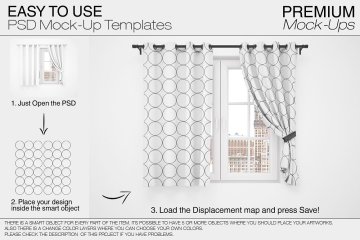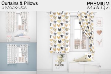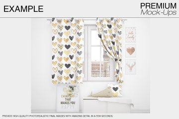 这款Curtains Mockup Pack可让您快速将设计和布局显示在数码照片真实展示中。