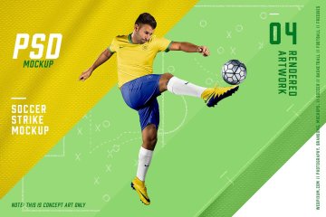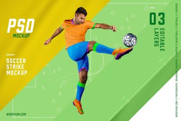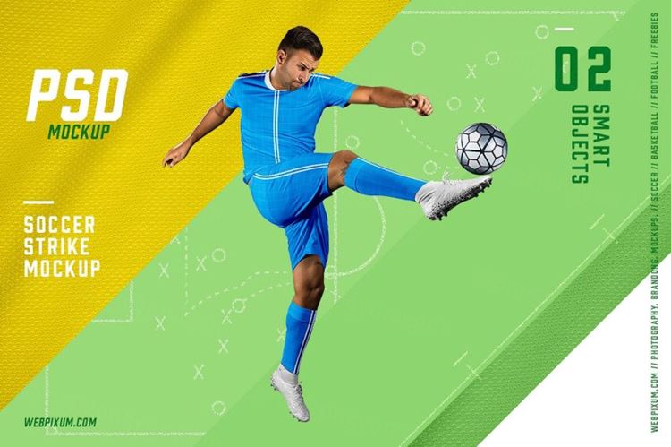 十分动感的世界杯足球运动服球衣样机展示模型mSoccer Strike PSD Mockup Template ...