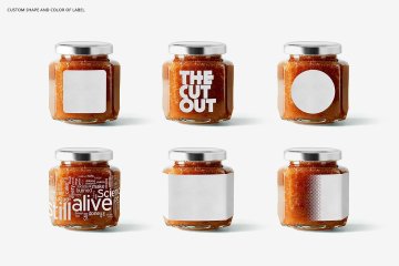 图穷联素材库 » 果酱肉酱罐食品包装外观设计样机模板 PSD_Jam_Jar_Mockups