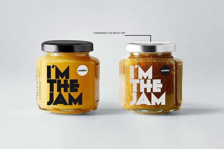 Jam jar模板 - 分层,可编辑的psd文件,通过简单地编辑智能对象和颜色层来准备展示您的自定义设计。