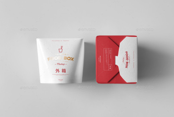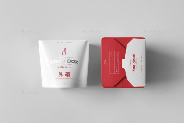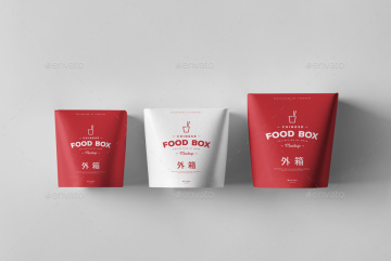 非常棒的一个中式食品包装样机,红白颜色搭配,格外显眼,个人认为甚至可以拿来直接修改使用。貌似用来做一些熟食、爆米花、点心的外包装展示都很不错。