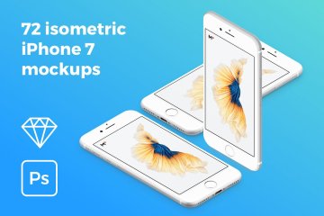 72个当下最完美的最高品质的时尚的iPhone7展示模型Mockups,都是PSD格式的,有各种角度,和多种颜色(红色、银色、黑色、磨砂黑、土豪金和玫瑰金),能帮你完美展示你的设计作品,enjoy!