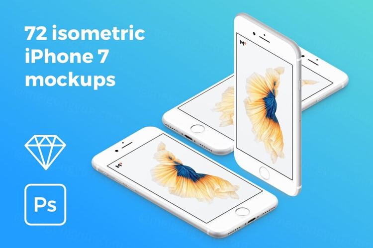 图穷联素材库 » 最完美的最高品质的时尚iPhone7展示模型 72 isometric iPhone 7 PSD