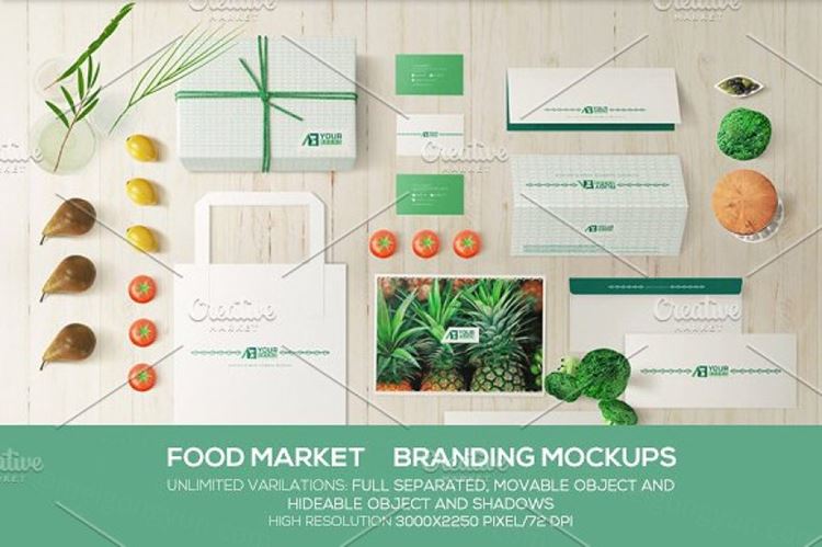 图穷联素材库 » 生鲜类市场品牌展示模型(Mockups)PSD模板 Food_Market_Identity_Branding_Mockups_...