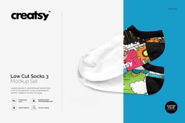 时尚印花短袜样机模板 Low Cut Socks 3 Mockup Set