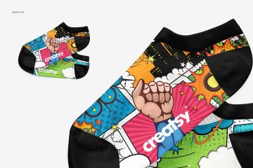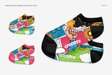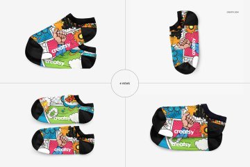 图穷联素材库 » 时尚印花短袜样机模板 Low Cut Socks 3 Mockup Set