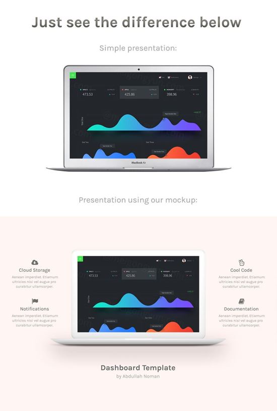 图穷联素材库 » 互联网产品苹果电脑展示样机模板 MacBook? Mockup with a Features List