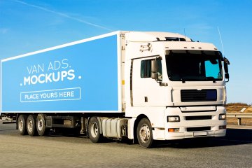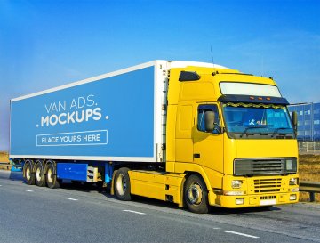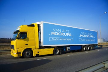 厢式货车广告展示模型Van Signage Mockup
