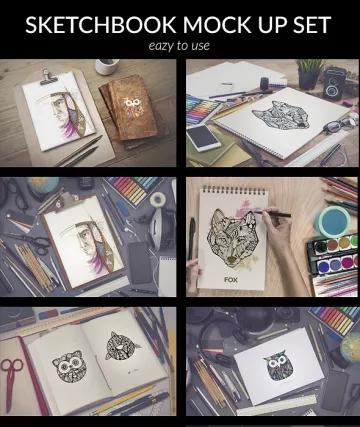 写生素描绘画作品展示样机模板 Sketchbook mock up set