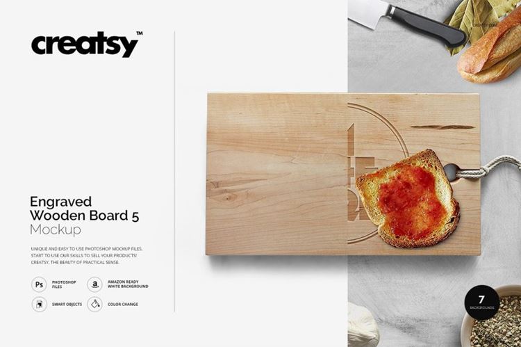 图穷联素材库 » 实木木纹砧板样机(三) Engraved Wooden Board 5 Mockup