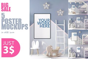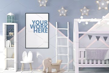 PSD儿童房帆布海报框架Mockups样机PSD Posters Mockup in Child Interior