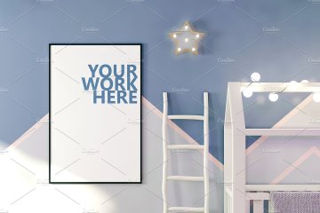 图穷联素材库 » PSD儿童房帆布海报框架Mockups样机PSD Posters Mockup in Child Interior