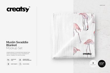 可爱全棉毯样机模板设计素材 Muslin-Swaddle-Blanket-Mockup-Set