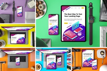 时尚高端的苹果电脑手机iPad设备UI样机展示模型mockups,在工作室中响应是一个模拟,可以呈现不同角度的响应设备,您可以将其用于您的设计,适用于品牌,并由单独的图层集组成。包含帮助文件。
