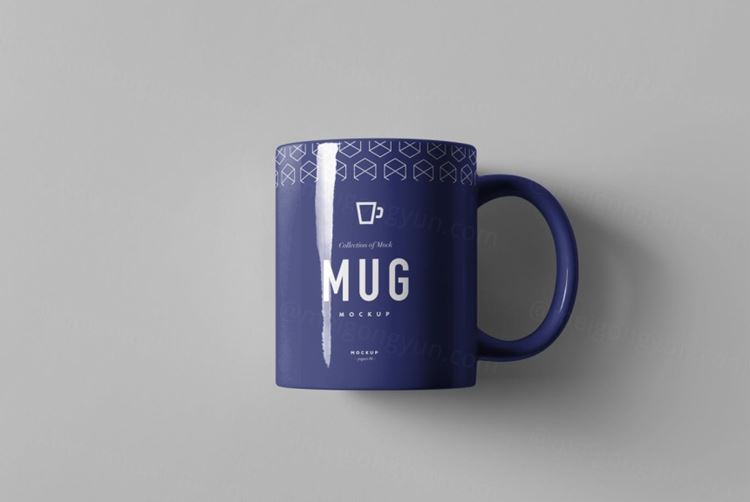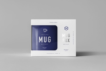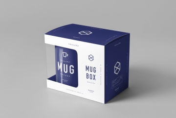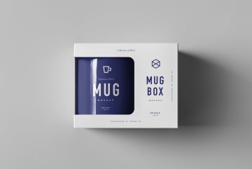 图穷联素材库 » 各种视觉角度蓝白马克杯杯子包装盒设计模型 Mug Box Mock-up