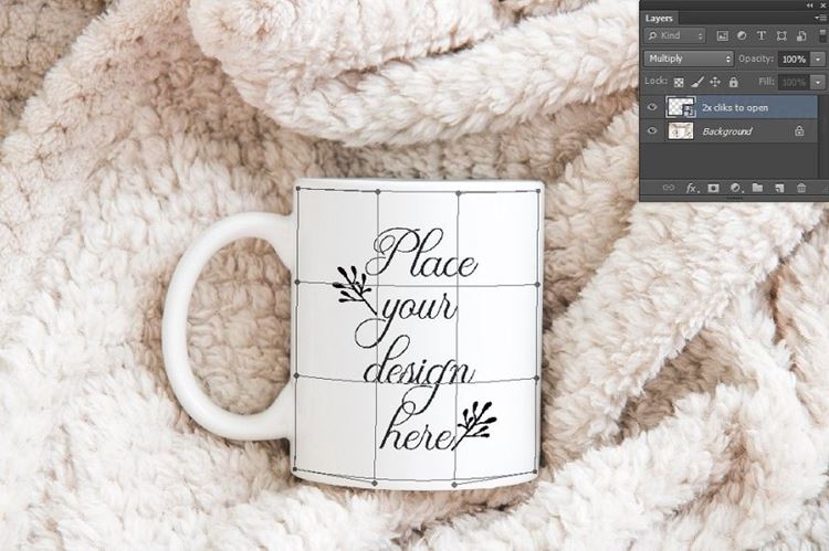 请注意:马克杯和背景位于同一层(这是一个真实的照片场景),杯子无法移动。