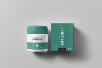 图穷联素材库 » 高品质高端逼真质感的药品包装设计展示模型 supplement-jar-box-mock-up-2