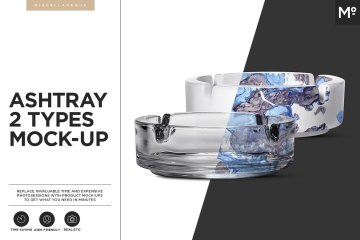图穷联素材库 » 玻璃烟灰缸包装样机模板 Ashtray 2 Types Mock-up