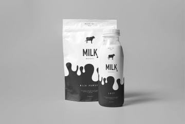高品质高端牛奶盒牛奶瓶包装展示模型 milk-mock-up