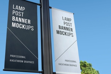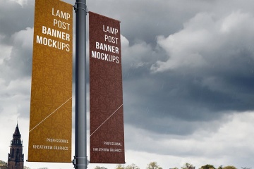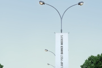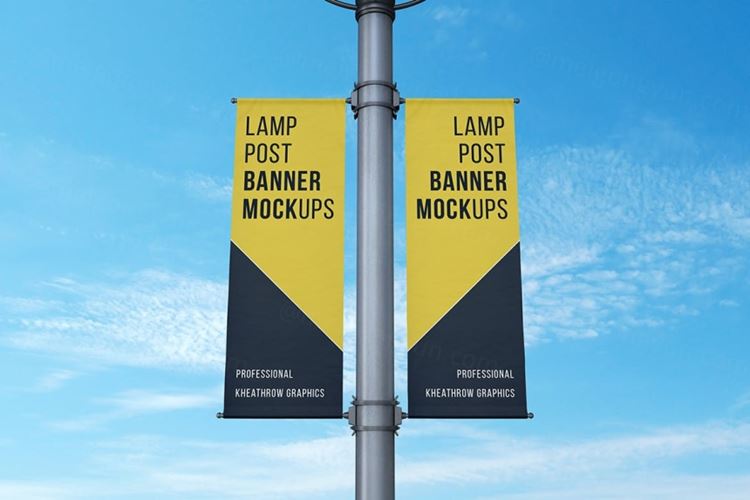 图穷联素材库 » 高品质的房地产路旗道旗展示模型 city-lamp-post-banners-mock-ups