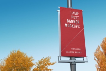 高品质的房地产路旗道旗展示模型 city-lamp-post-banners-mock-ups
