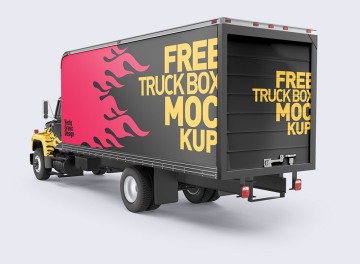 福特卡车四个视角车身广告贴图展示模版 Ford Box Truck Mockups