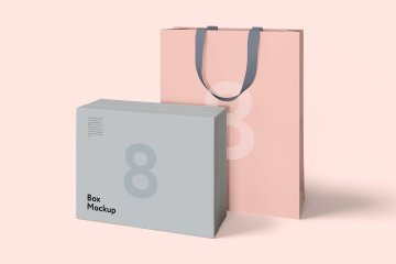 图穷联素材库 » 高端商品礼盒纸袋包装VI品牌样机PSD模版 Box and bag mock-up set