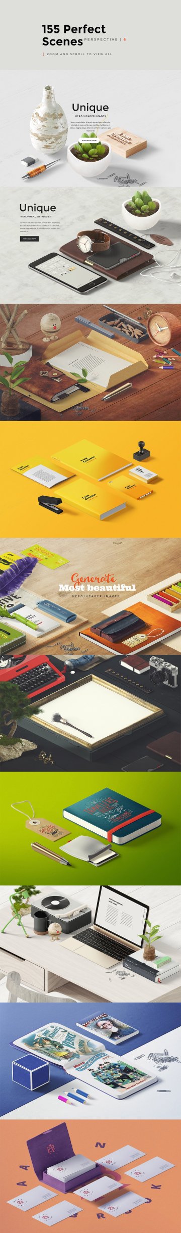 我们刚刚添加了大约500个新项目(现在总共1500个项目)和32个(现在整个150个场景)预制场景。婚礼,文具,化妆品样机在3 anlges。更新作为分离产品