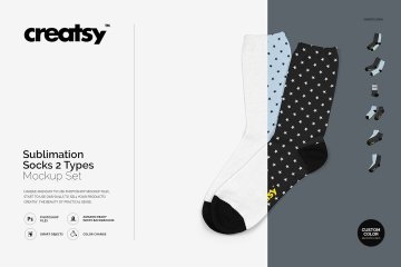 高品质多角度运动长袜贴图展示样机模板 Sublimation Socks 2 Types Mockup Set