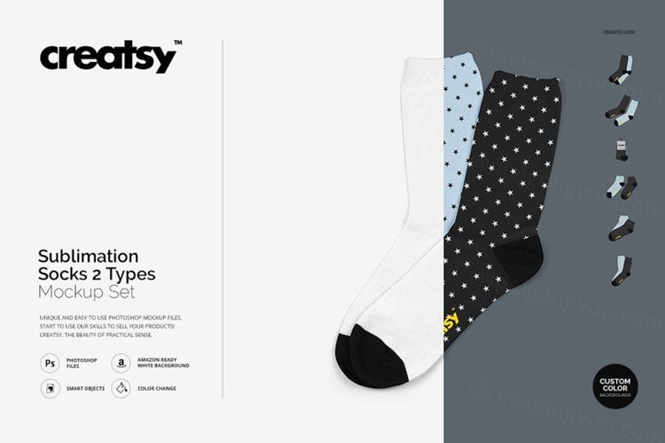 图穷联素材库 » 高品质多角度运动长袜贴图展示样机模板 Sublimation Socks 2 Types Mockup Set