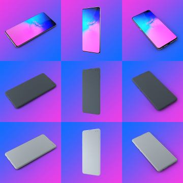 三星Galaxy S10 +的高分辨率Photoshop文档。专为应用程序设计,网站和一般设计模型和演示文稿而创建。