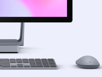 Microsoft Surface Studio 2,键盘和鼠标的可自定义颜色。