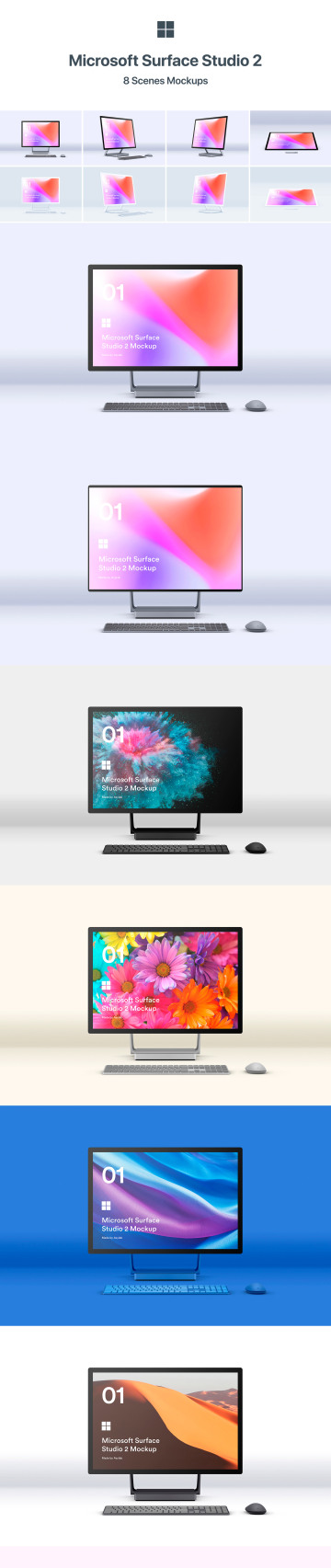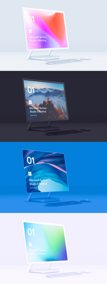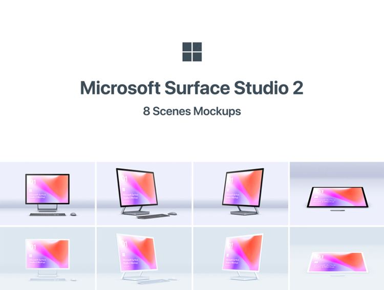 Microsoft Surface Studio 2 - 包括8个PSD高质量文件