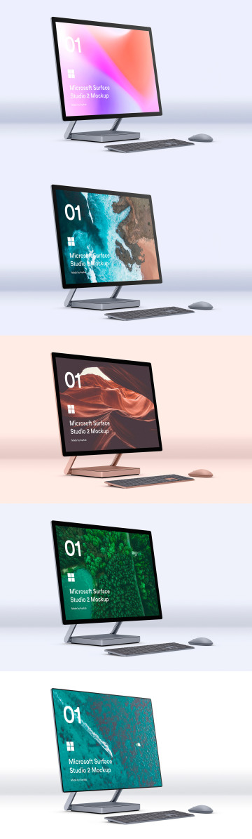 微软工作站一体机网页UI贴图样机PSD模板素材 Microsoft Surface Studio 2 Mockups