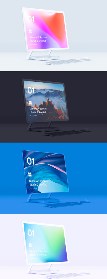 图穷联素材库 » 微软工作站一体机网页UI贴图样机PSD模板素材 Microsoft Surface Studio 2 Mockups