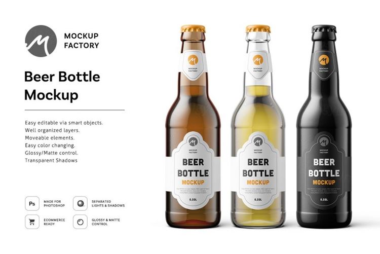 图穷联素材库 » 高品质啤酒包装设计提案样机PSD模板 Beer Bottle Mockup