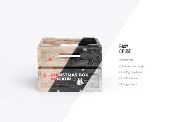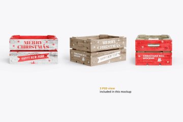 圣诞木箱礼盒贴图样机模版 Christmas Box Mockup 3 PSD