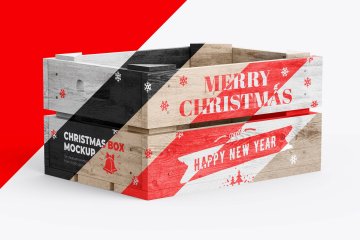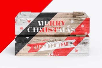 图穷联素材库 » 圣诞木箱礼盒贴图样机模版 Christmas Box Mockup 3 PSD
