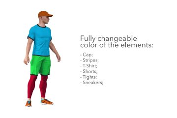 完全可着色的元素(T恤,短裤,紧身衣,条纹,帽子,运动鞋);