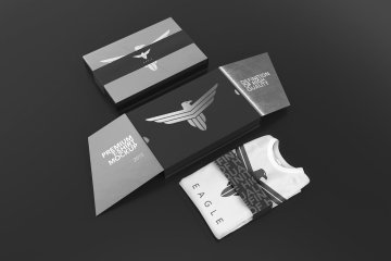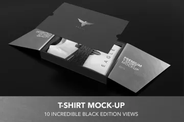 图穷联素材库 » 高端T恤衬衫黑色包装盒贴图样机PSD模板 T-Shirt Black Edition Mock-up