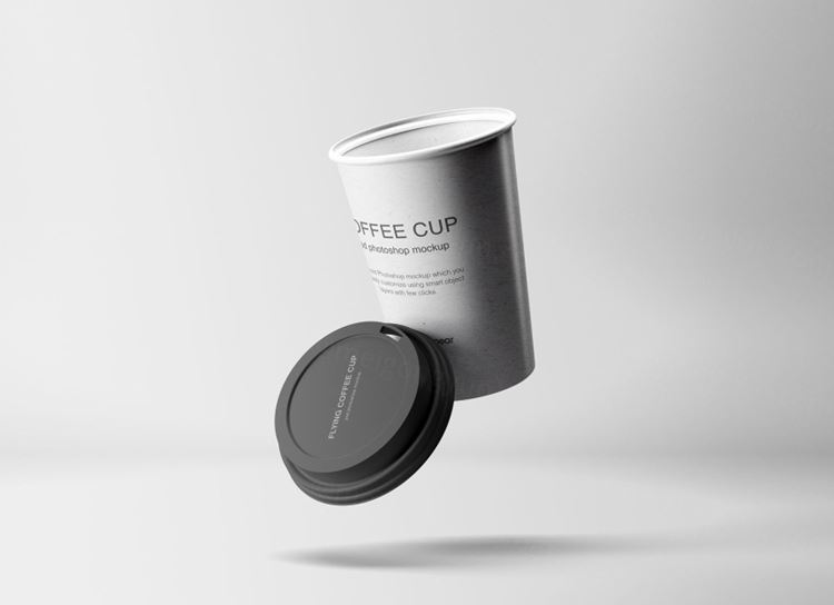 图穷联素材库 » 咖啡杯饮料杯果汁饮品冷饮牛奶外纸杯模型PSD模板 Flying Coffee Cup Mockup