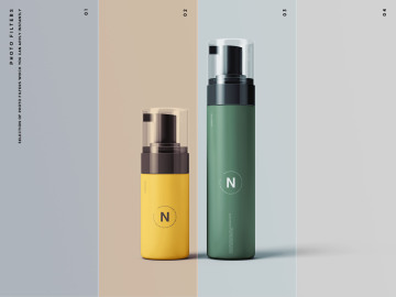 图穷联素材库 » 按压式化妆品护肤品瓶外观设计样机模板 Cosmetic Bottles Packaging Mockup