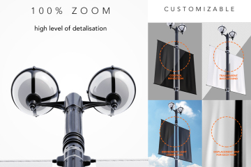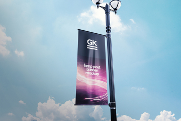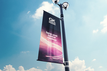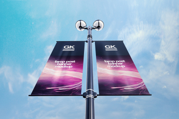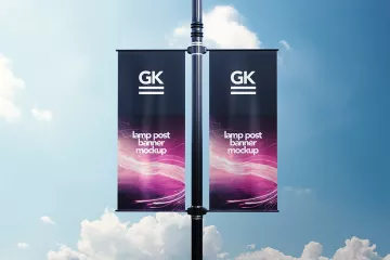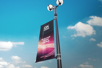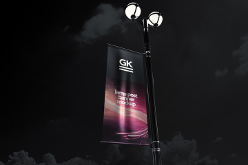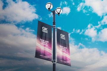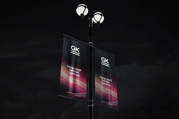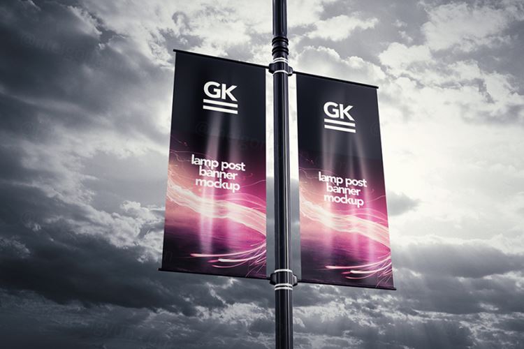 图穷联素材库 » 路灯横幅灯柱海报设计提案展示PSD样机模板 Lamp Post Banner Mock-up