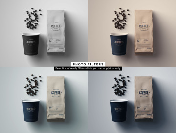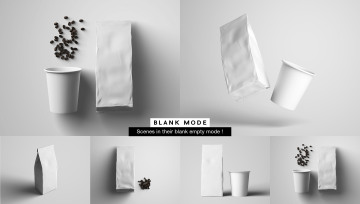 图穷联素材库 » 咖啡纸杯&咖啡豆牛皮纸包装袋设计样机 Coffee Package Mockup