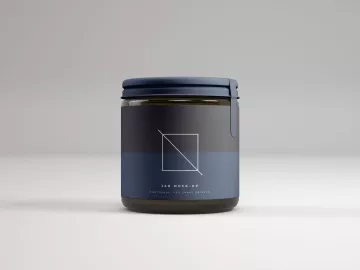 优质的最小玻璃罐样机模板在正视图中拍摄,使用此图形,您将能够在几秒钟内以逼真的方式呈现您的罐子包装设计。